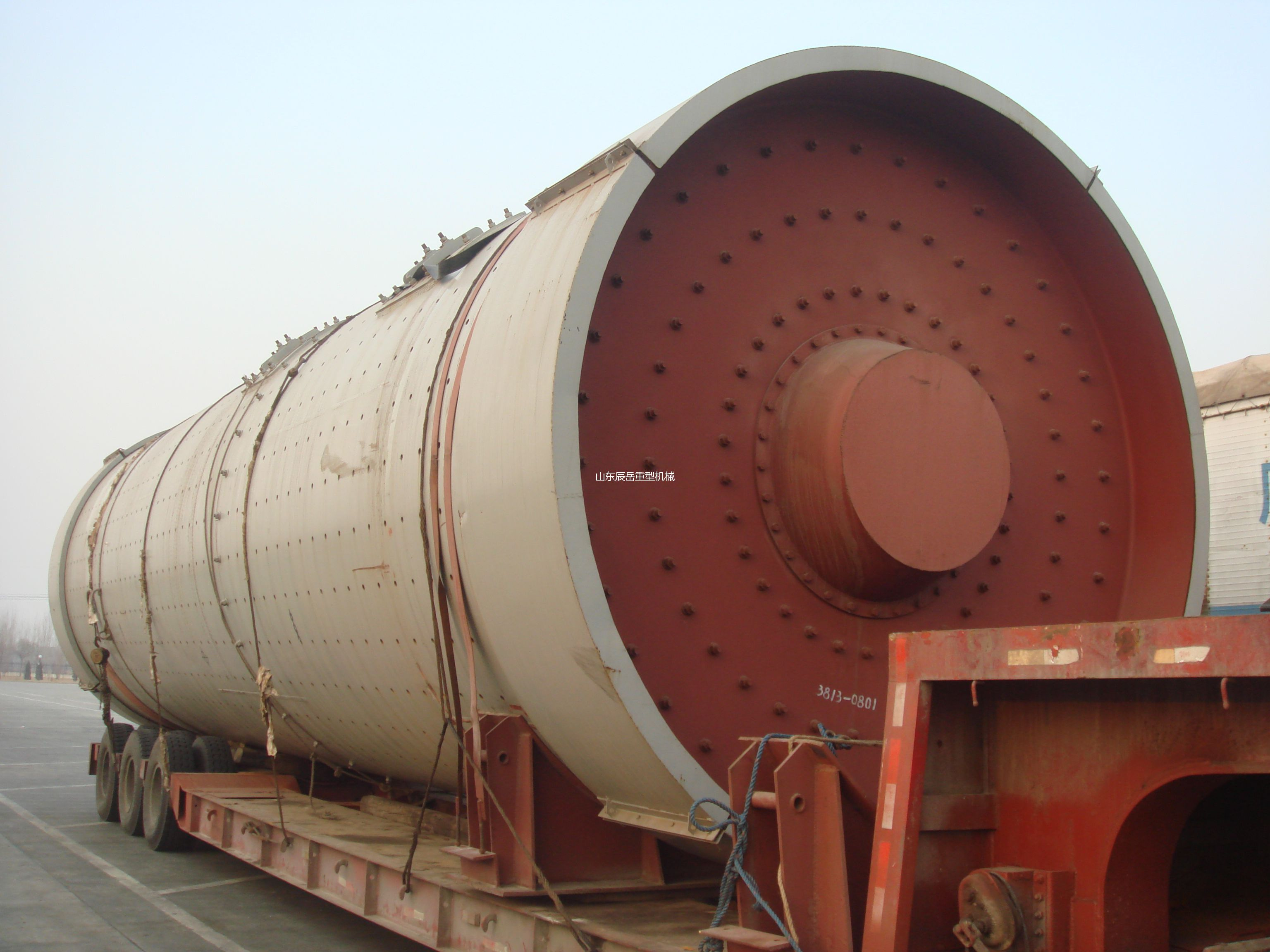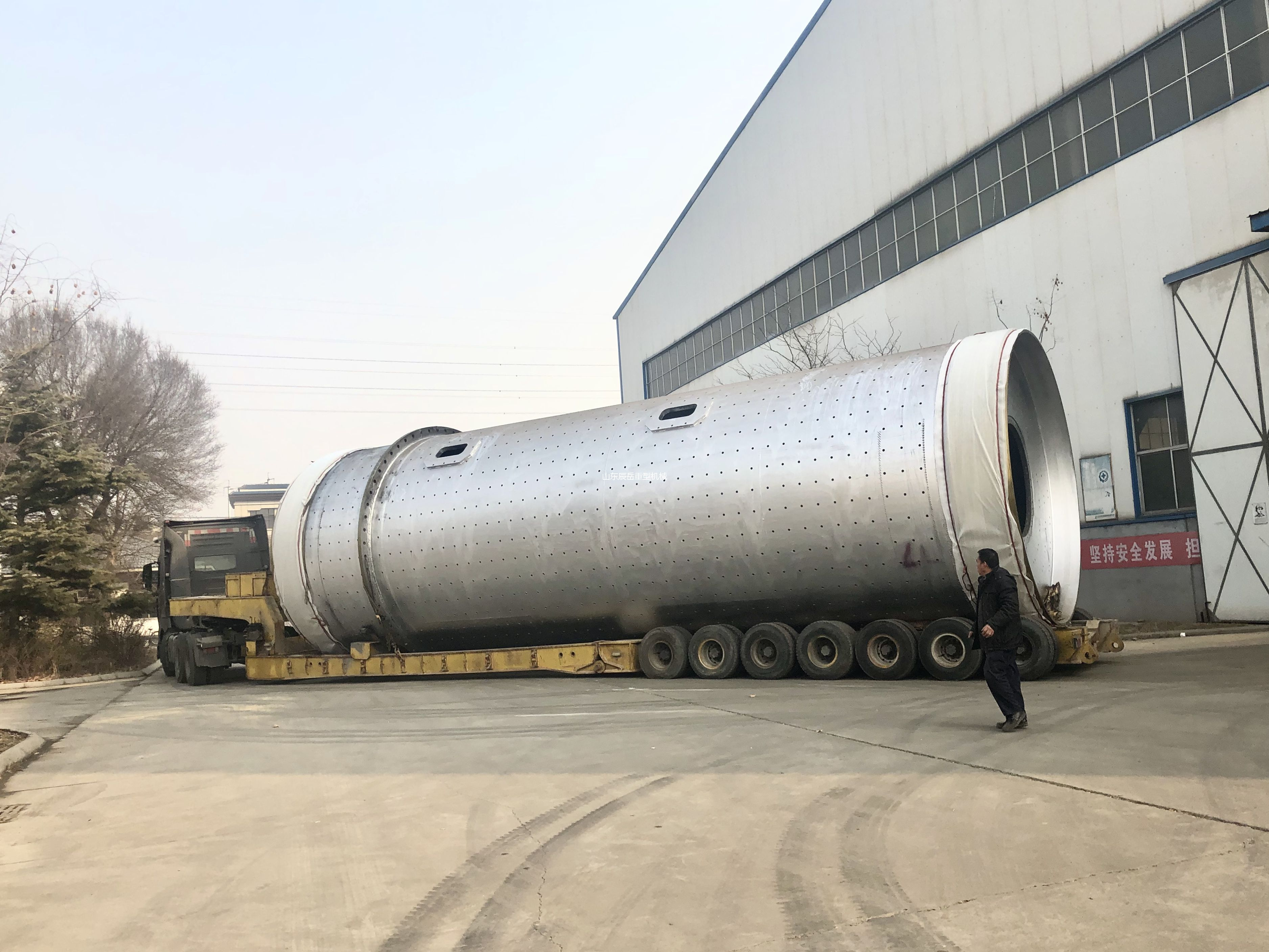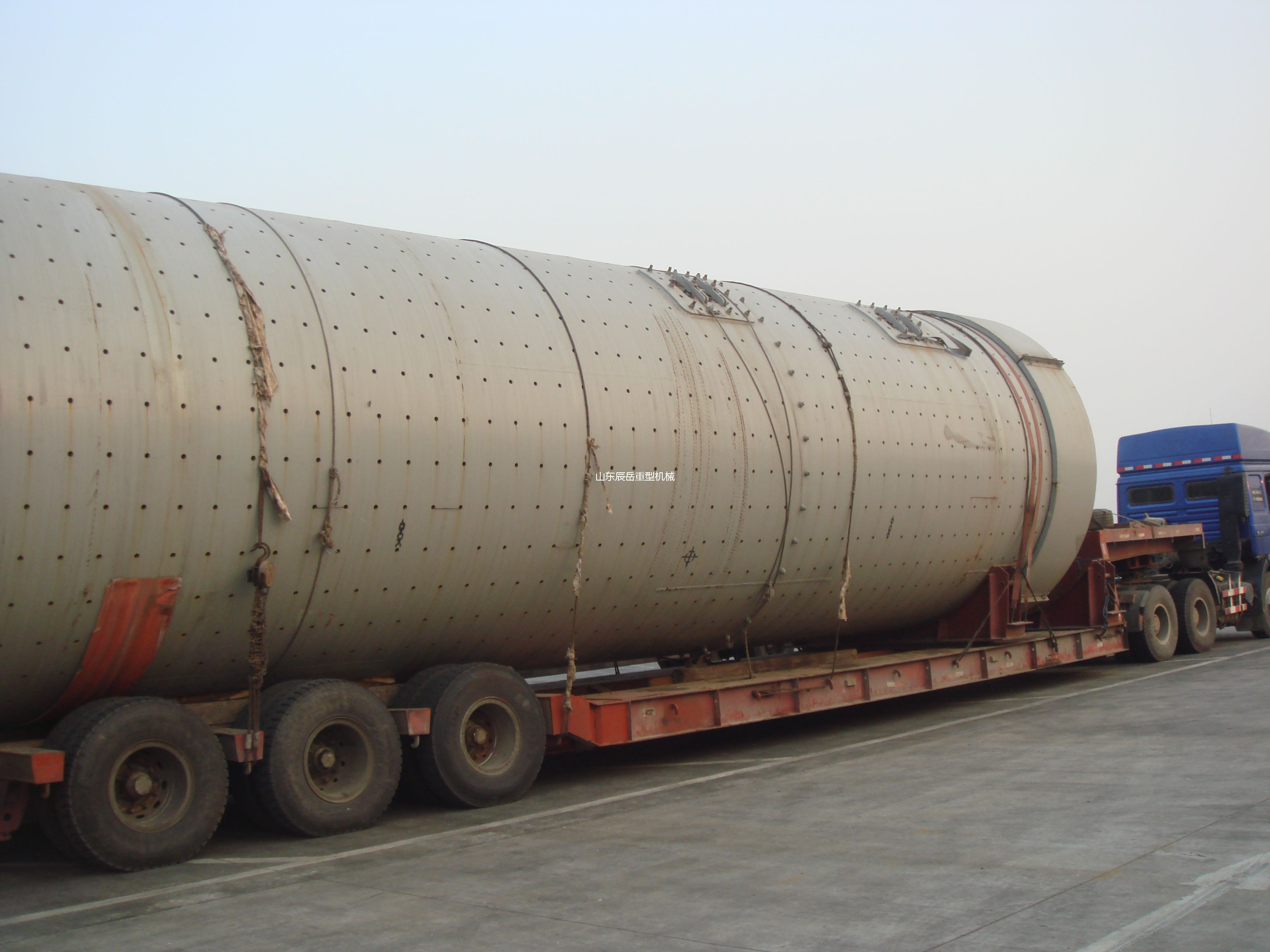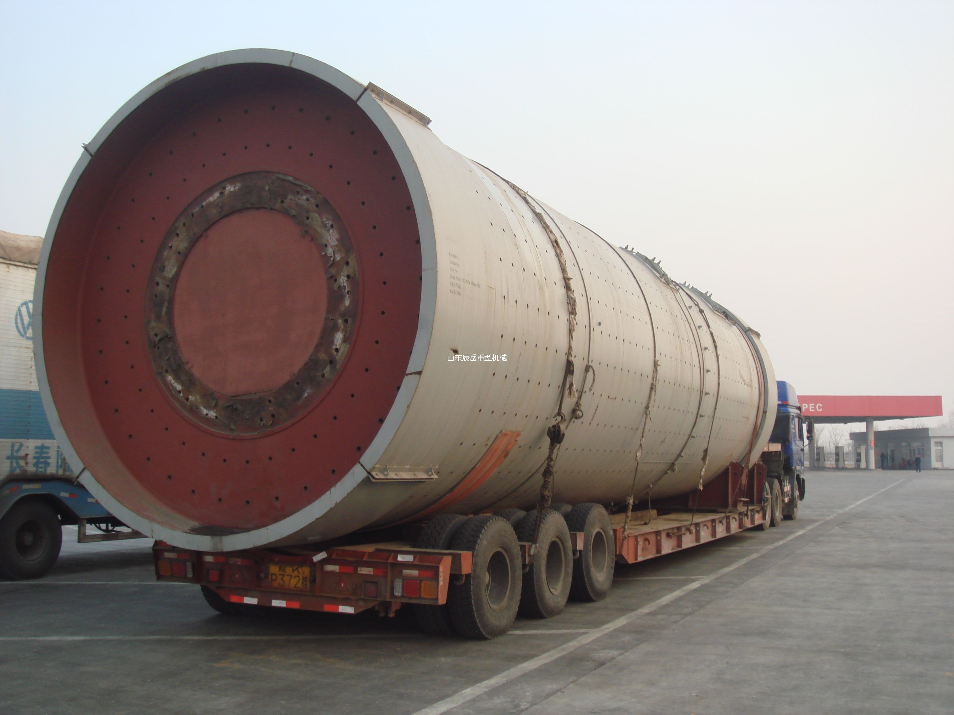本機(jī)為筒形旋轉(zhuǎn)裝置,外沿齒輪傳動(dòng),兩倉(cāng),格子型球磨機(jī)。物料由進(jìn)料裝置經(jīng)入料中空軸螺旋均勻地進(jìn)入磨機(jī)一倉(cāng),該倉(cāng)內(nèi)有階梯襯板或波紋襯板,內(nèi)裝不同規(guī)格鋼球,筒體轉(zhuǎn)動(dòng)產(chǎn)生離心力將鋼球帶到一定高度后落下,對(duì)物料產(chǎn)生重?fù)艉脱心プ饔?。物料在一倉(cāng)達(dá)到粗磨后,經(jīng)單層隔倉(cāng)板進(jìn)入二倉(cāng),該倉(cāng)內(nèi)鑲有平襯板,內(nèi)有鋼球,將物料進(jìn)一步研磨。粉狀物通過(guò)卸料箅板排出,完成粉磨作業(yè)。