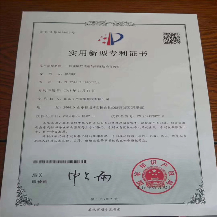 我公司技術(shù)人員通過多年的探索,在上百臺新型節(jié)能環(huán)保石灰窯的建設中,總結(jié)研發(fā)出(立式)石灰窯出避免結(jié)瘤的新型技術(shù)專利。